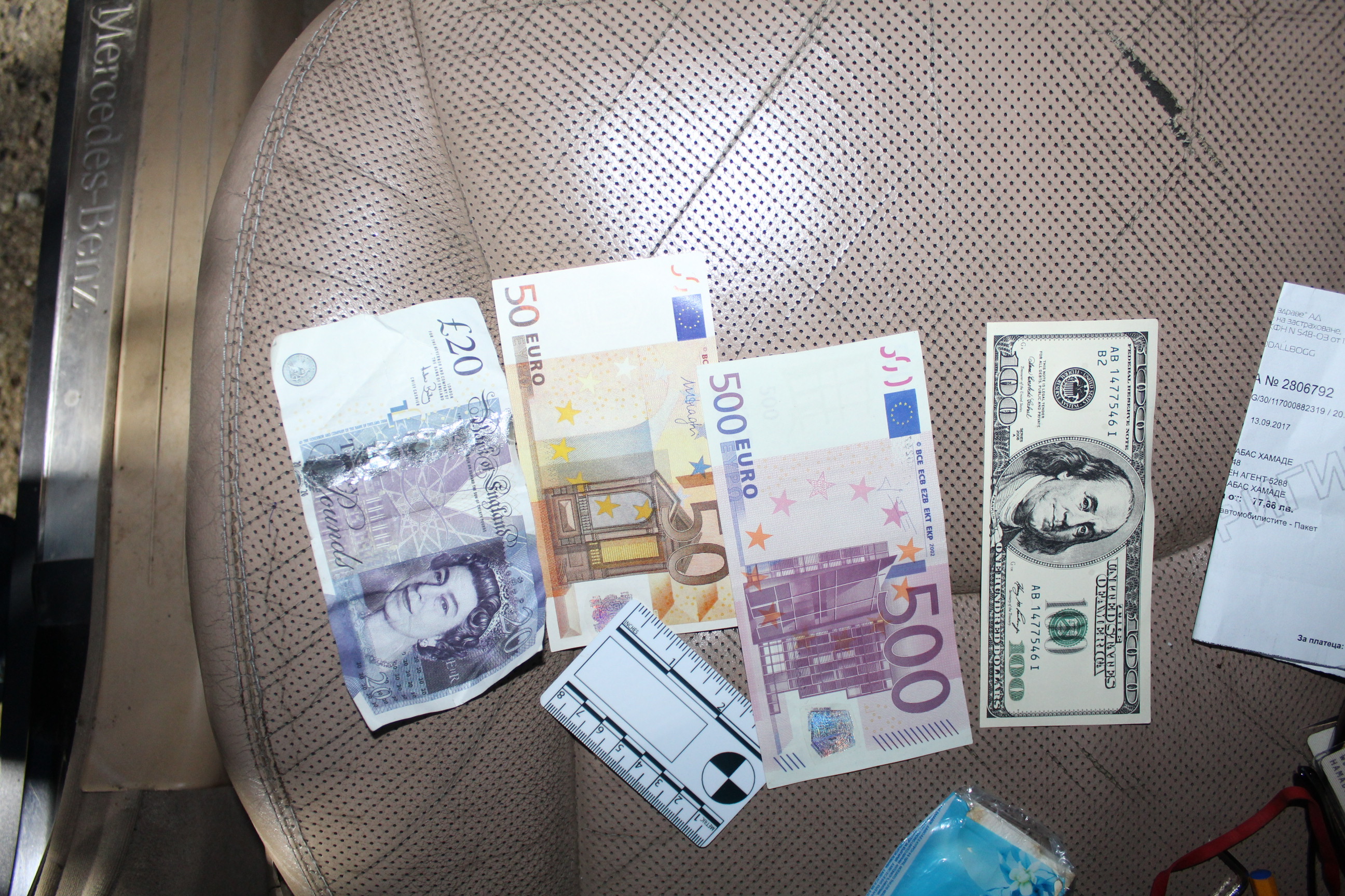 Около 1 часа през нощта, в автосервиз в квартал "Горубляне“ в столицата, са били задържани две лица в момент на сделка. В лек автомобил "Мерцедес“ са били намерени 40 350 евро, 28 600 щатски долара и 20 паунда. Въпросните пари представляват неистински банкноти.