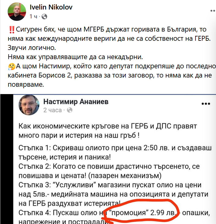 С ексклузивен коментар за цените на горивата, спекулата с тях, чия собственост и защо са петролните вериги излезе на стената си във Фейсбук журналистът Ивелин Николов.