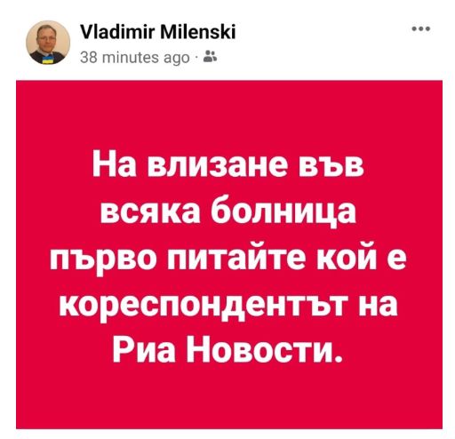 Владимир Миленски (член на Атлантическия съвет) се води за изключително приближен до министър Тагарев. Той идва от Брюксел и заема един от най-важните постове в МО. Отявлен ястреб, както личи и от профила му във Фейсбук. Ето как Миленски е коментирал скандалното поведение на своя колега Мустафа Емин в "Пирогов", който поиска дете да бъде извадено от шоковата зала, за да влезе неговото.