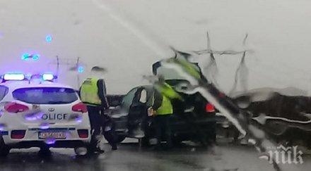 ИЗВЪНРЕДНО: БМВ се размаза на магистрала "Хемус“, шофьори вадят ранените (СНИМКИ)