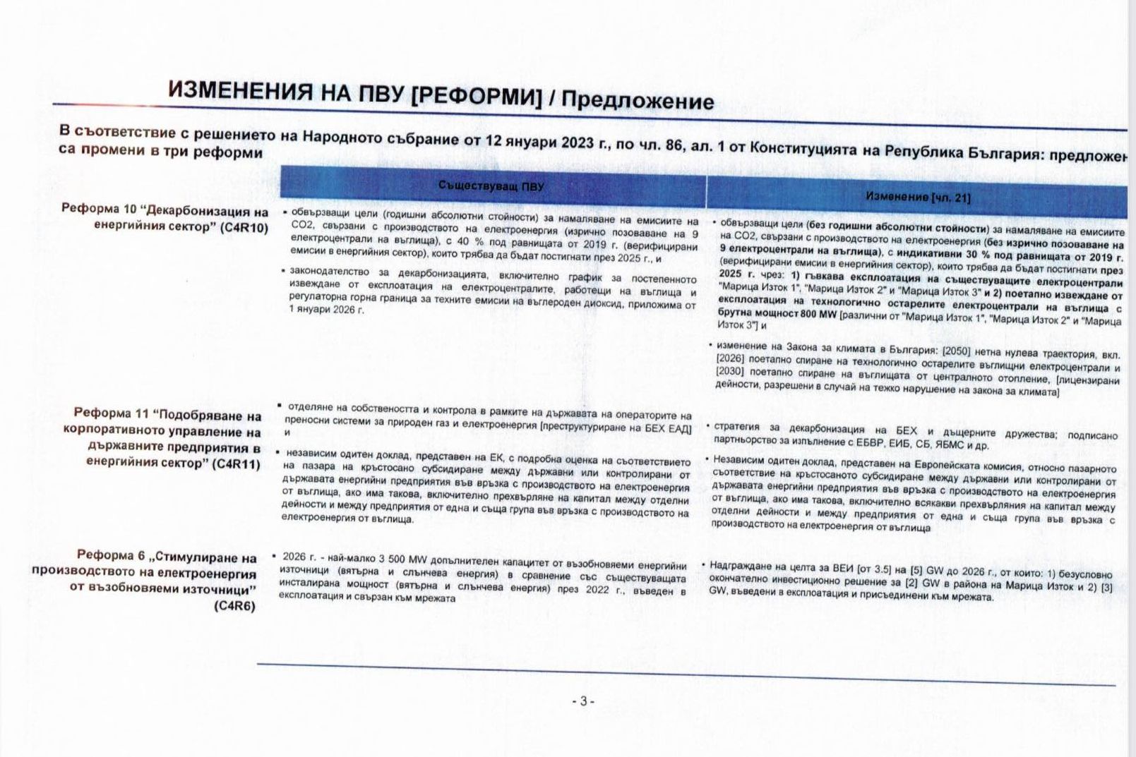 Скандални промени в Плана за възстановяване и устойчивост предлагат от Министерството на енергетиката. В общественото пространство се появи документ от няколко страници, който ревизира пагубните за енергетиката ни предложения на кабинета "Петков" за намаляване на емисиите от въглищните централи с 40% до края на 2025 г.