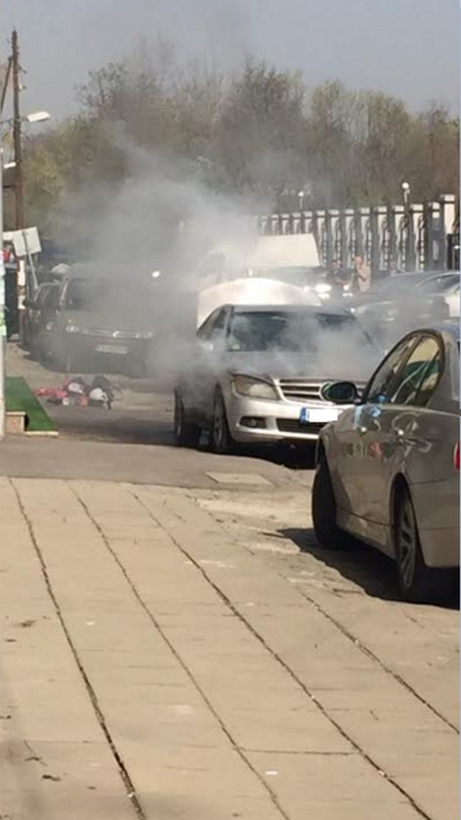 Баровски мерцедес избухна в пламъци преди секунди точно на входа на Военноисторическия музей в столицата, близо до фитнеса "Атама", видя с очите си репортер на ПИК.
