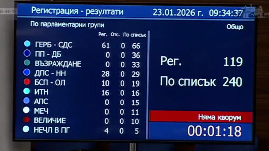 Така ако и при следващите регистрации не се събере нужният кворум от 121 депутати, за да се открие заседанието, то днес такова няма да има.