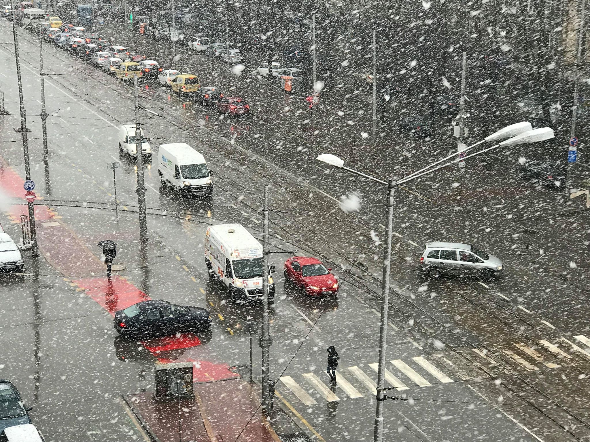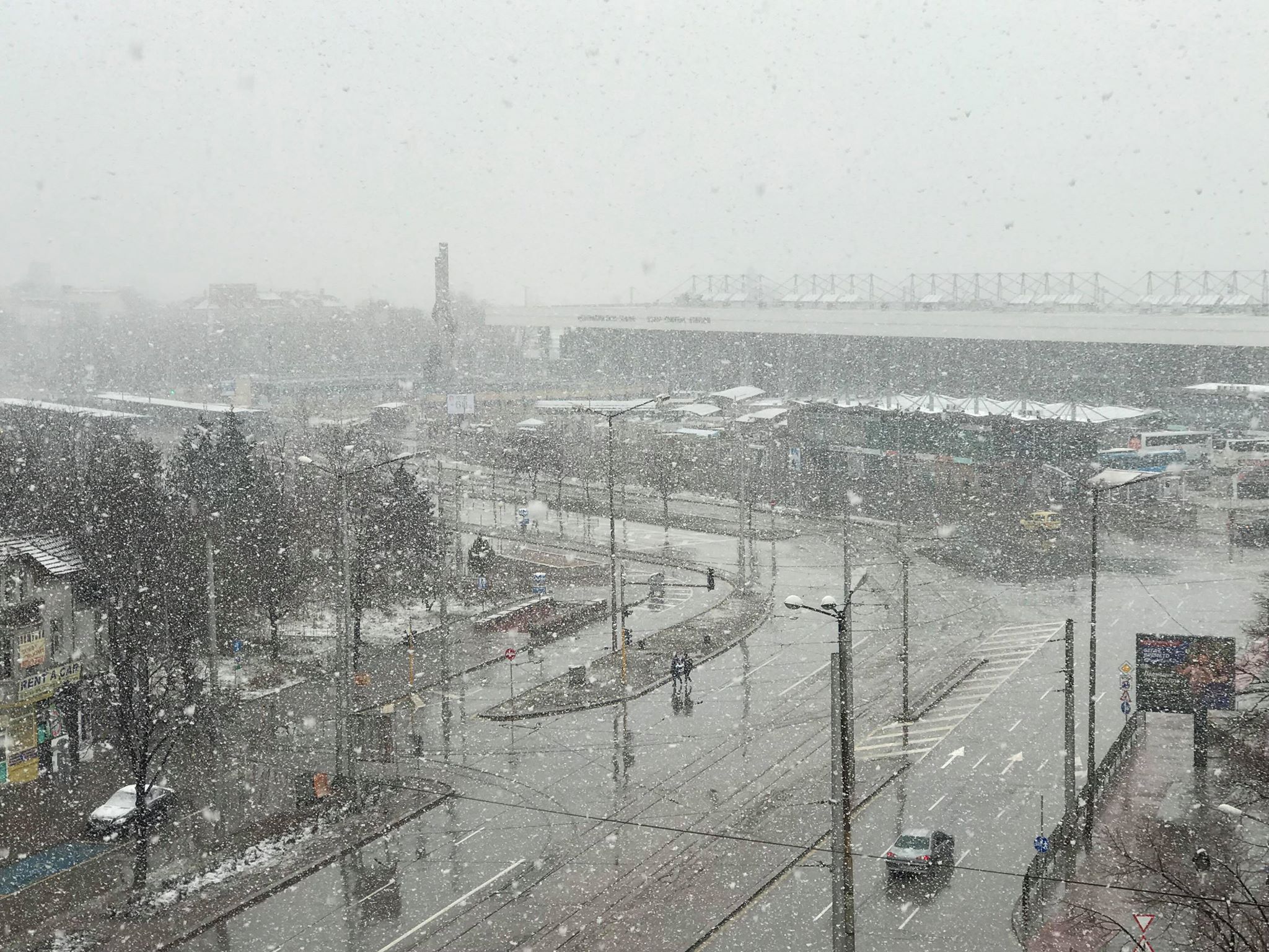 Снежна виелица връхлетя София тази сутрин. Вали силен сняг, има и вятър, което затруднява видимостта. Пътните настилки са хлъзгави.