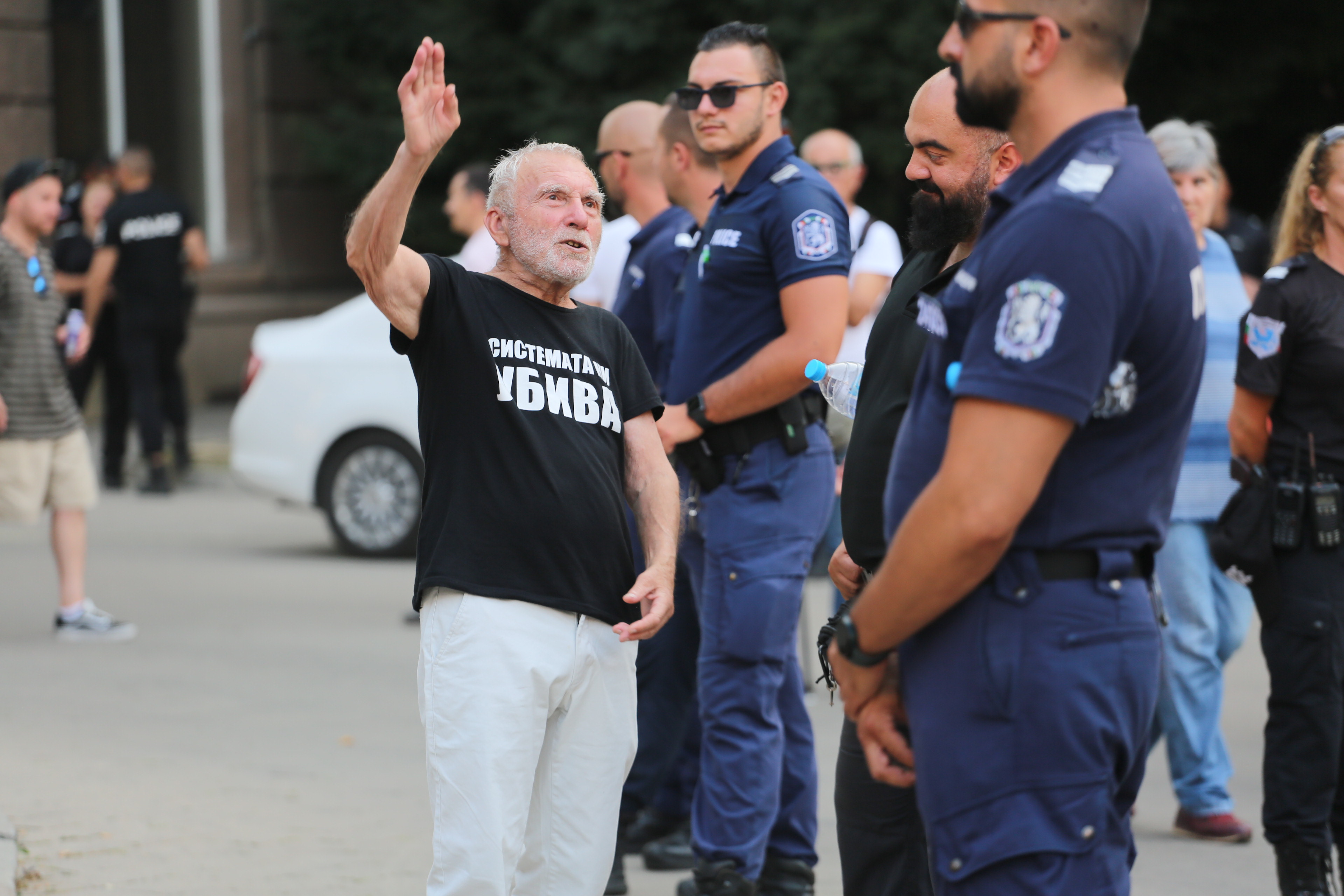 Стотина души се събраха пред президентството да поискат импийчмънт на държавния глава Румен Радев. Сред тя беше вечният протестиращ Йоло Денев, както и Георги Георгиев, известен като Гошо Бореца.