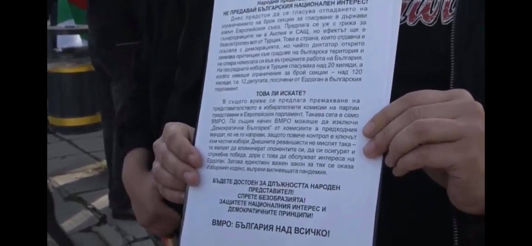 ВМРО излиза на първи протест срещу решенията на новото мнозинство в 45-о Народно събрание. По искане на един от лидерите на Демократична България - Христо Иванов, парламентарната правна комисия отмени ограничението в чужбина да се откриват до 35 избирателни секции, с което хората на Красимир Каракачанов смятат, че се облагодетелства ДПС.