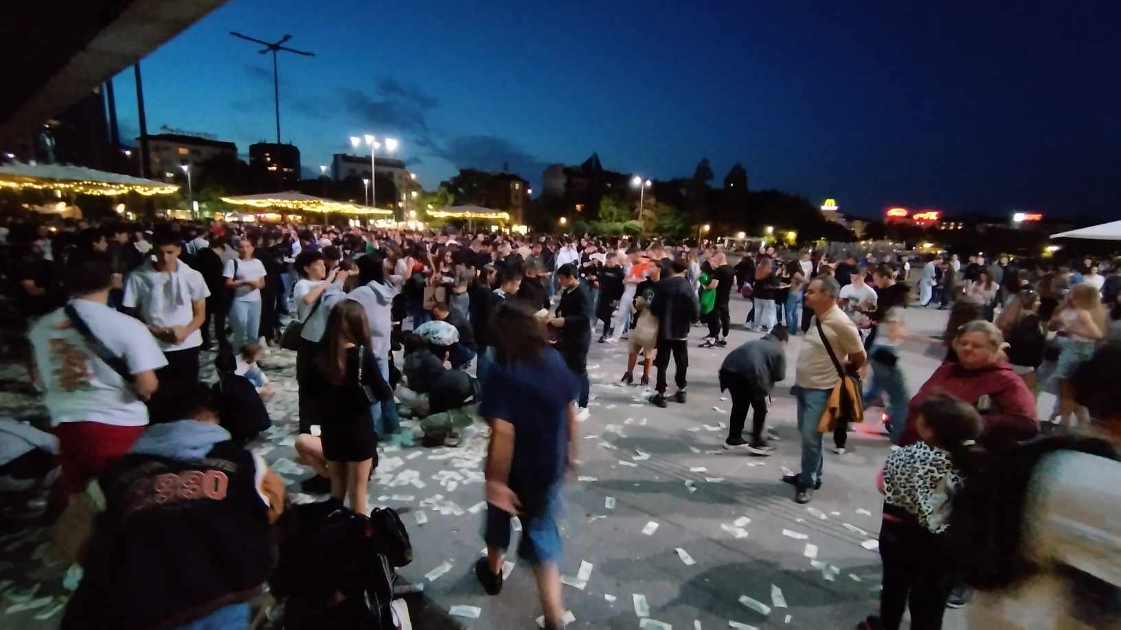 Тазвечершният пърформанс направи много боклук пред сградата на НДК, като не става ясно дали организаторите са се ангажирали да го почистят.