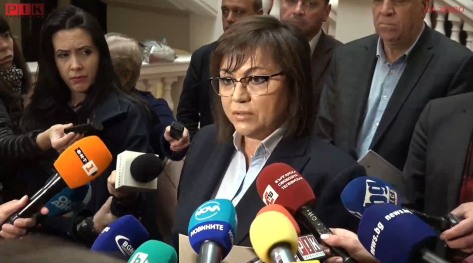Минута преди да влезе на разговора си с колегите от ПП, Нинова категорично заяви, че БСП няма да подкрепят правителство с мандат на ГЕРБ, ДПС и "Възраждане".