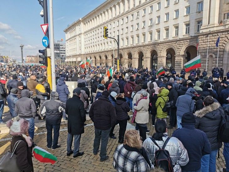 Депутати, бивши министри и граждани мощно протестират в триъгълника на властта между сградите на Министерския съвет, президентството и бившия партиен дом срещу снощния арест на лидера на най-голямата опозиционна партия и бивш премиер Бойко Борисов, бившата шефка на кабинета му Севдалина Арнаудова, бившият финансов министър Владислав Горанов и - по непотвърдени данни - бившата шефка на парламентарната бюджетна комисия Менда Стоянова.