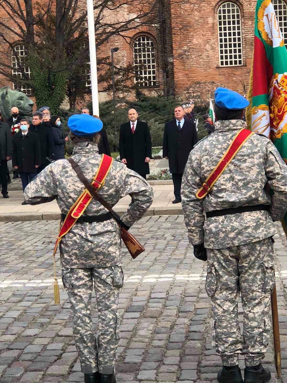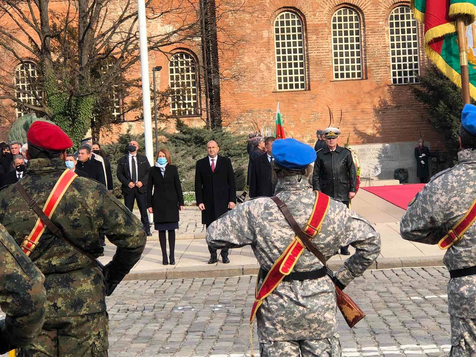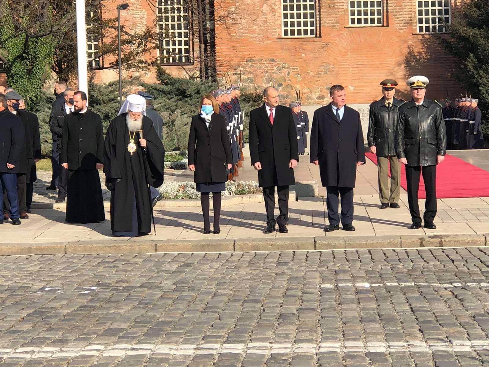 Всички останали ВИП лица, сред които депутати, кметът Йорданка Фандъкова и военни, са с маски и спазват мерките.