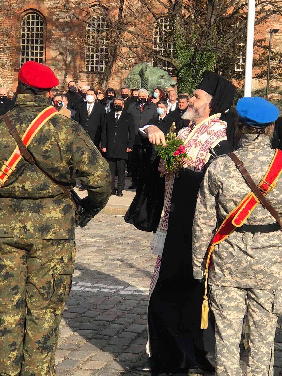 Президентът Румен Радев, вицепремиерът и министър на отбраната Красимир Каракачанов, началникът на отбраната Ефтим Ефтимов, висши военни, депутати, представители на местната власт и общественици почитат традиционното освещаване на бойните знамена, флагове и знамената-светини на Българската армия на Богоявление.