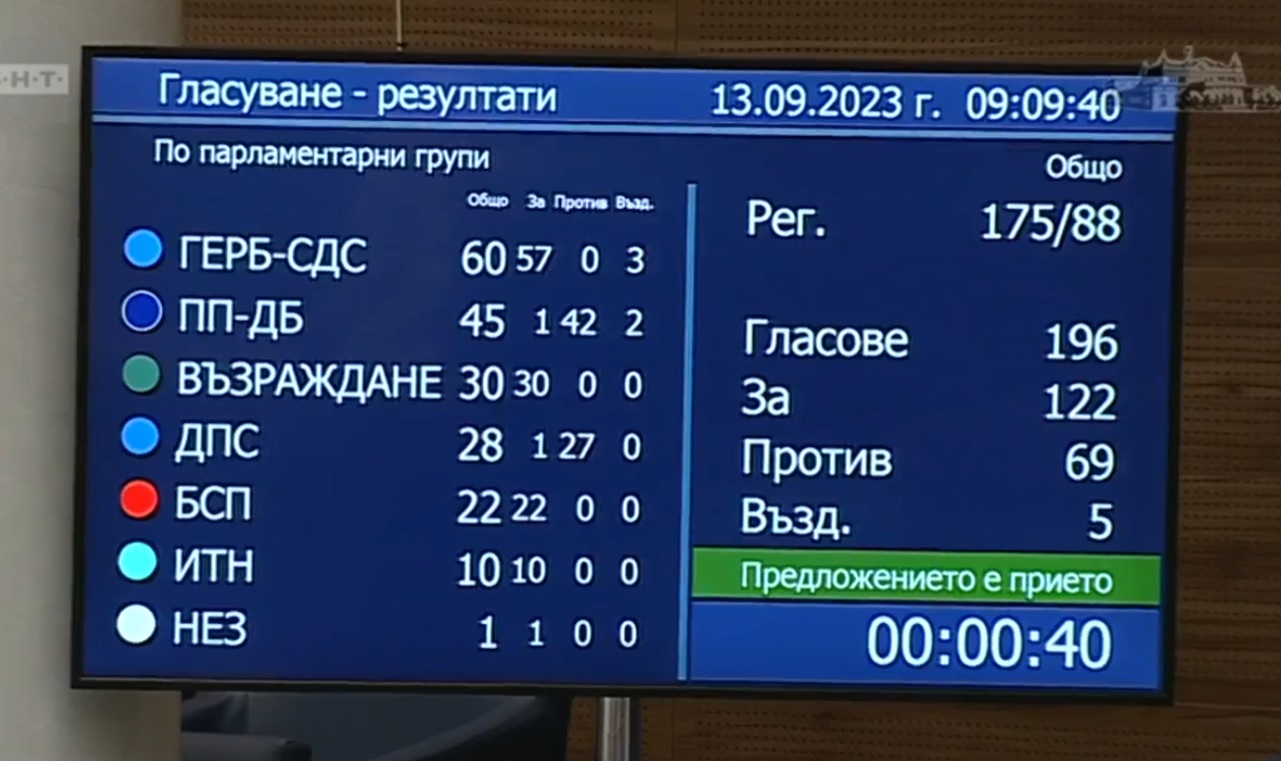 Предложението на "Възраждане" беше изслушването да бъде първа точка от днешното заседание и при първото гласуване получи подкрепата на 57 депутати от ГЕРБ.