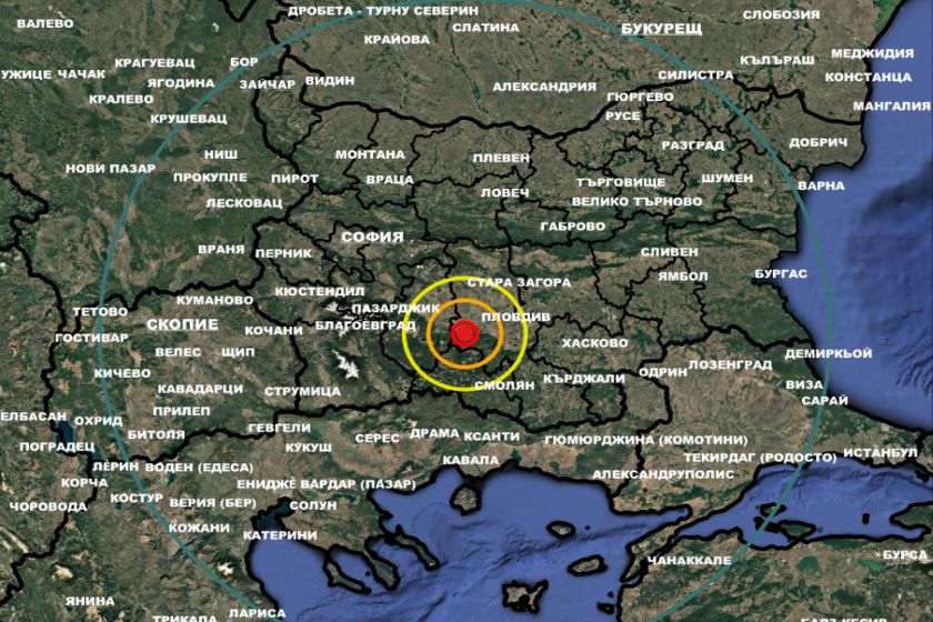 Земетресение от 3.1 по Рихтер разлюля Южна България днес следобед В 16:39 ч. в област Пловдив.