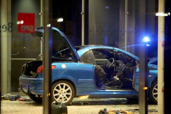 На кадри от мястото на инцидента се вижда, че в автомобила е имало пожар. Свалени са и няколко туби с бензин и бутилки със запалима течност.
