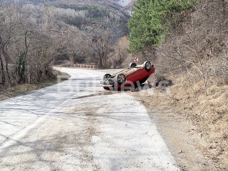 Лек автомобил "Ауди" с врачанска регистрация се е движел по пътя към село Паволче, когато внезапно водачът е загубил контрол над управлението. Колата се е поднесла на пътя, ударила се е вдясно в ската, след което се е обърнала по таван на асфалта. Зад волана е бил около 35-годишен мъж, който е пътувал сам. Вследствие на каскадата по немското возило има сериозни материални щети.