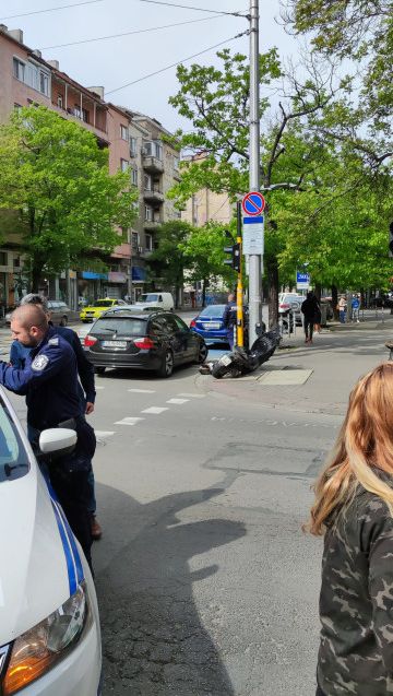 "Полицай с цивилна кола (сивото БМВ от снимките с регистрационен номер СВ3079СР) премина на червено през светофара на Дондуков и Раковска, в посока ЦУМ. Къци Въпцаров се спускаше по Раковска (черното моторче от снимките) от Операта, в посока Сточна гара, и се блъсна в задницата на колата", разказва очевидец на инцидента.
