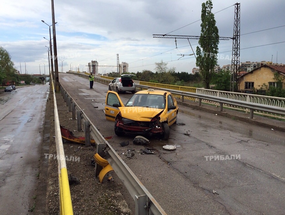 Три линейки са пристигнали на мястото на катастрофата, които за закарали за преглед в спешния център четирима от „Форд“-а и шофьора на таксито. Преди това пристигналите полицаи провериха с дрегер водача на жълтата кола, който през цялото време се държеше за главата. На този етап няма информация какво е здравословно състояние на участниците в инцидента.