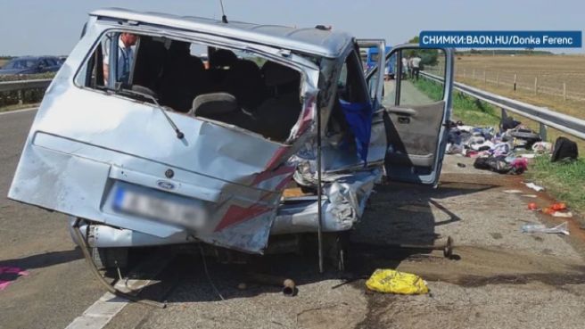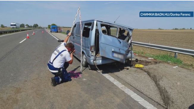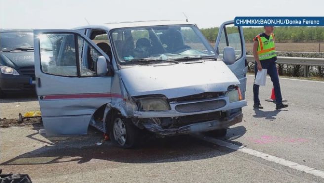 Според информация на унгарските медии микробусът с чужда регистрационна табела се е блъснал във вътрешната бариера близо до 98-ия километър на магистрала M5.