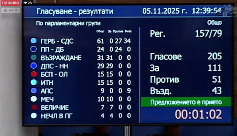 При гласуването 111 народни представители бяха в подкрепа да има такава комисия и предложението на ДПС-Ново начало, беше прието.