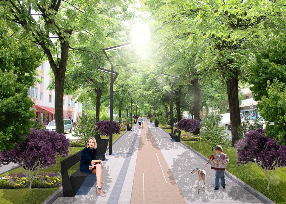 Настилката на цялото пространство ще бъде сменена, ще се изградят нови зелени площи, а съществуващата ще бъде обогатена с нови видове подходяща растителност. Предвижда се повече едроразмерна растителност за по-добро засенчване през летните месеци. Градският дизайн, включващ новите пейки, чешми, осветителни тела и системи за разделно сметосъбиране ще запази стилистиката на вече готовата част от пешеходната зона.