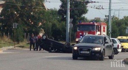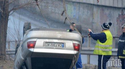 Шофьор оцеля по чудо, след като колата му се обърна по таван
