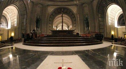 Ковчегът на Франко бе изнесен от осем членове на семейството му и положен в катафалка, която ще го отнесе до по-дискретен гроб северно от Мадрид.