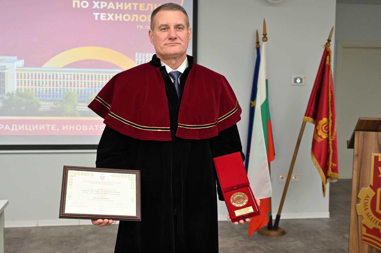 Изпълнителният директор на VP Brands International Иван Папазов с почетно научно звание от УХТ Пловдив