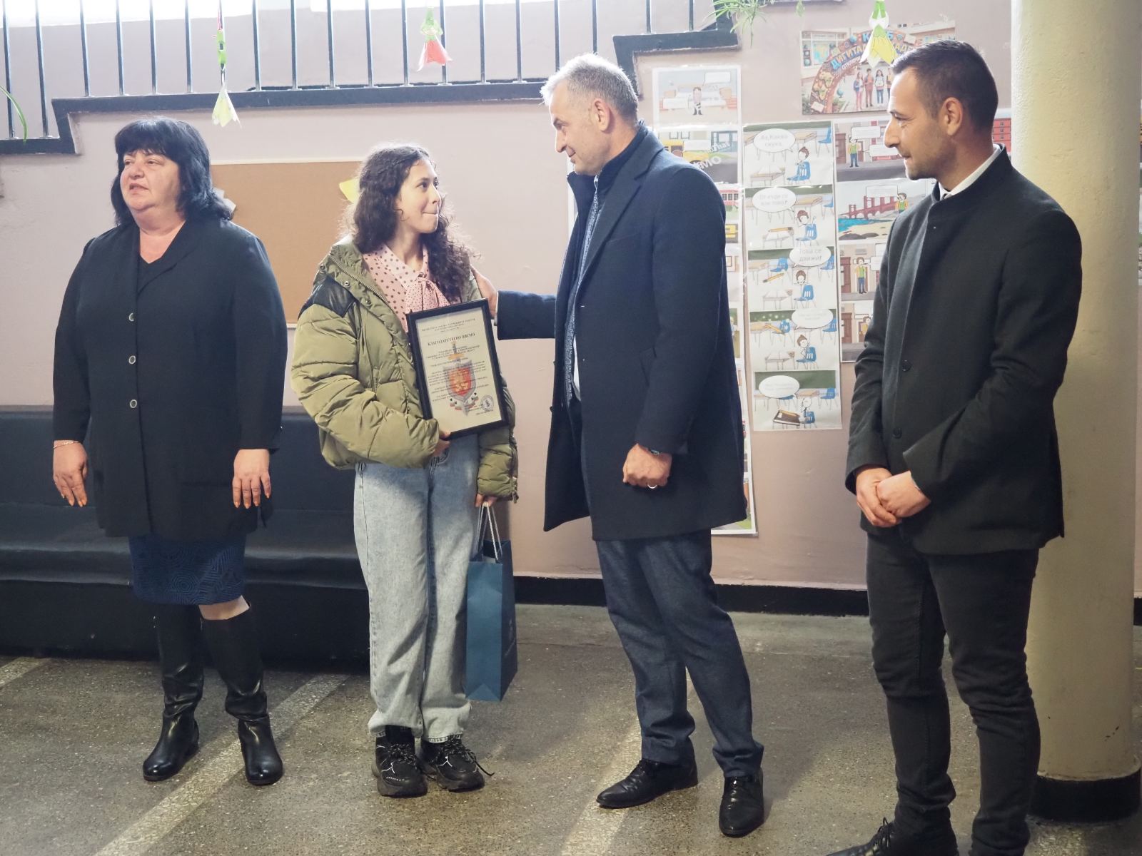 Днес, ученичката бе отличена с грамота от ОДМВР Варна за проявената честност, гражданска доблест и отговорност.