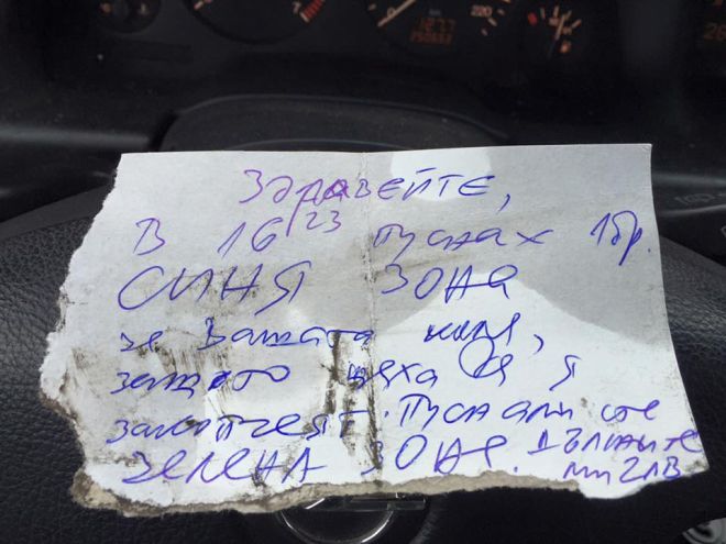 Социалните мрежи буквално завряха след споделена бележка, за извършено добро дело. Става дума за човек, който е "спасил" колата на жена от паяците на "Градска мобилност". Той е пуснал есемес за "Синя зона", тъй като тя се е объркала и е заплатила само "Зелена зона".