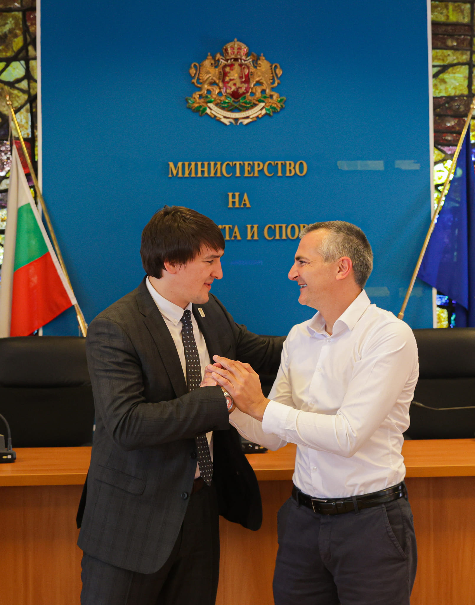 Двамата се засекли на награждаването на българските сумисти, които завоюваха седем медала в рамките на Европейските игри в Полша.