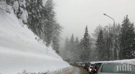 Хаос на пътя за Пампорово, колони от коли блокират трафика (СНИМКА)
