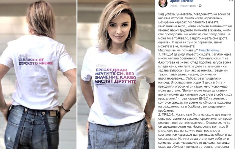 Повод за откровенията на Ирина стана нова кампания на Ейвън, кояно насочва вниманието върху трудните моменти в живота, които жените са преодоляли, но които не са споделили.