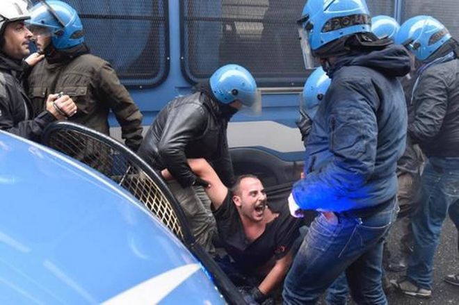 Местните органи на реда не дадоха разрешение за провеждането на шествието под лозунга „Не на Ренци, не на референдума”, но въпреки това то се състоя.