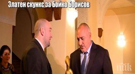 След председателя на ГЕРБ и вече премиер в оставка Бойко Борисов и техният кандидат-президент г-жа Цецка Цачева беше удостоена от “Господари на ефира” със “Златен скункс”. Това съобщиха от предаването.