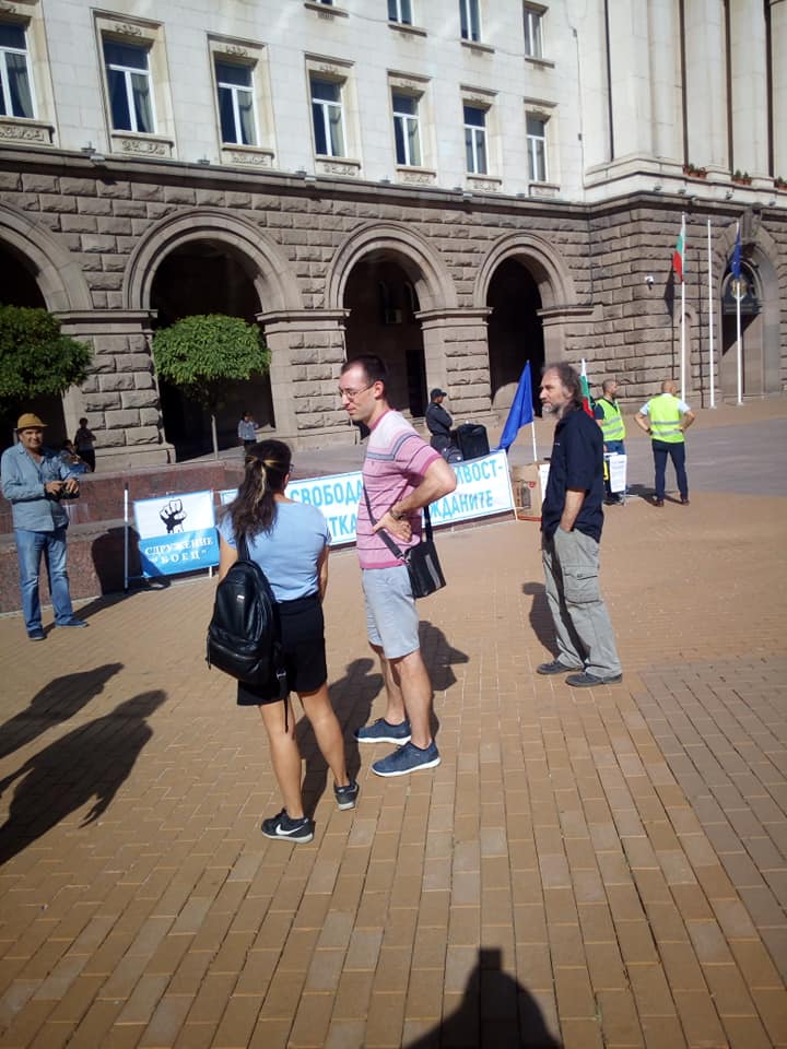 В последните дни обаче дори подсъдимите отсъстваха от "протеста" на "Боец" и снощи Георги отново бе сам в изявата си. Той бе обявил голяма, всенародна акция пред Министерски съвет, но накрая бе подкрепен единствено от скандалния адвокат на соросоидите и протестърите Хаджигенов и говорителя им Манол Глишев. Гражданското присъствие бе сведено до 7-8 случайни минувачи.