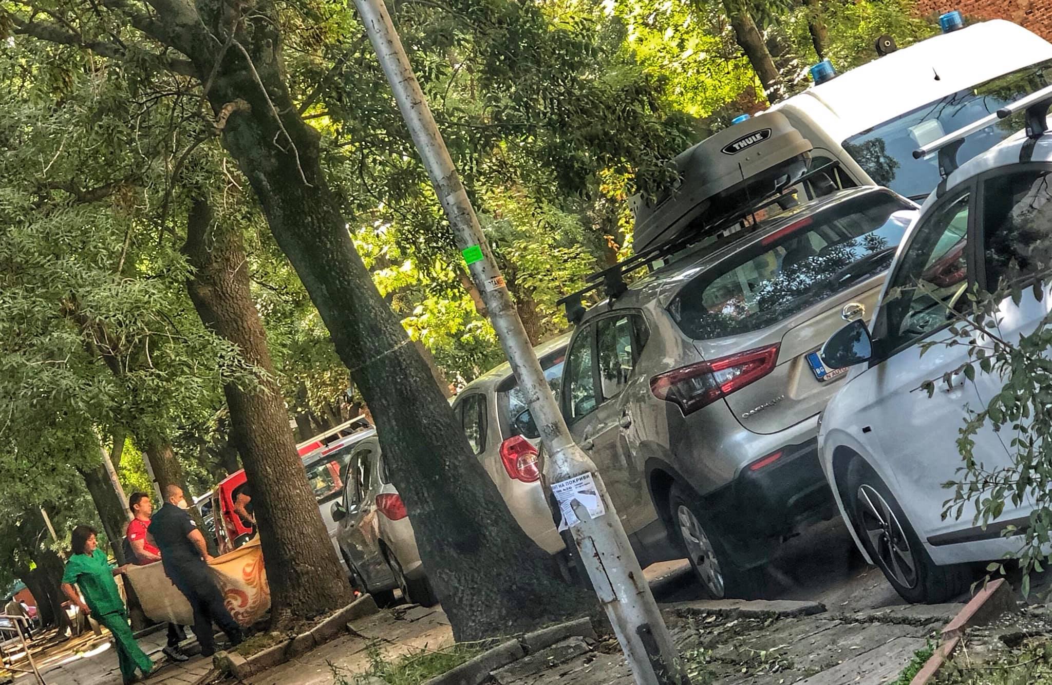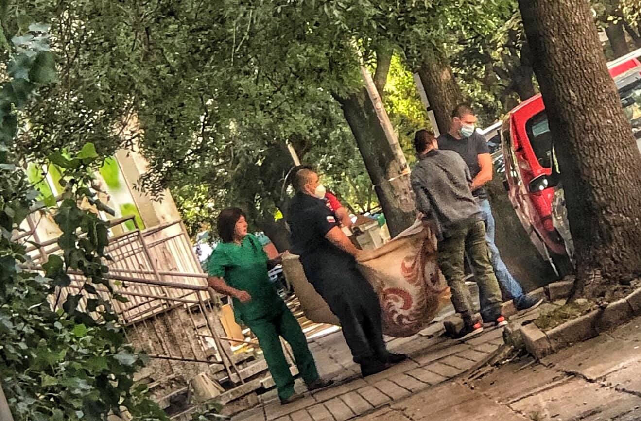 Виждам няколко млади човека и медици да носят старо одеяло, хванали го за ъглите. НОСЯТ ЧОВЕК. В ОДЕЯЛО! Така го качиха в линейката на Спешна помощ!
