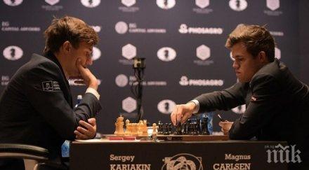 До последно ще има интрига в мача за световната титла по шахмат между действащия първенец от Норвегия Магнус Карлсен и претендента Сергей Карякин от Русия.