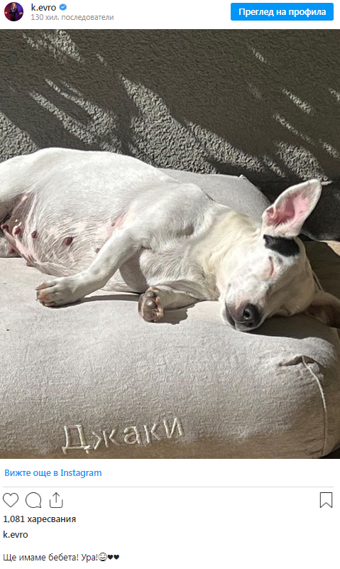 Не, не става въпрос за внучета, а за кучета. Любимата й Джаки ще става майка, а актрисата показа колко е наедряла. „Ще имаме бебета! Ура!“, споделя тя.