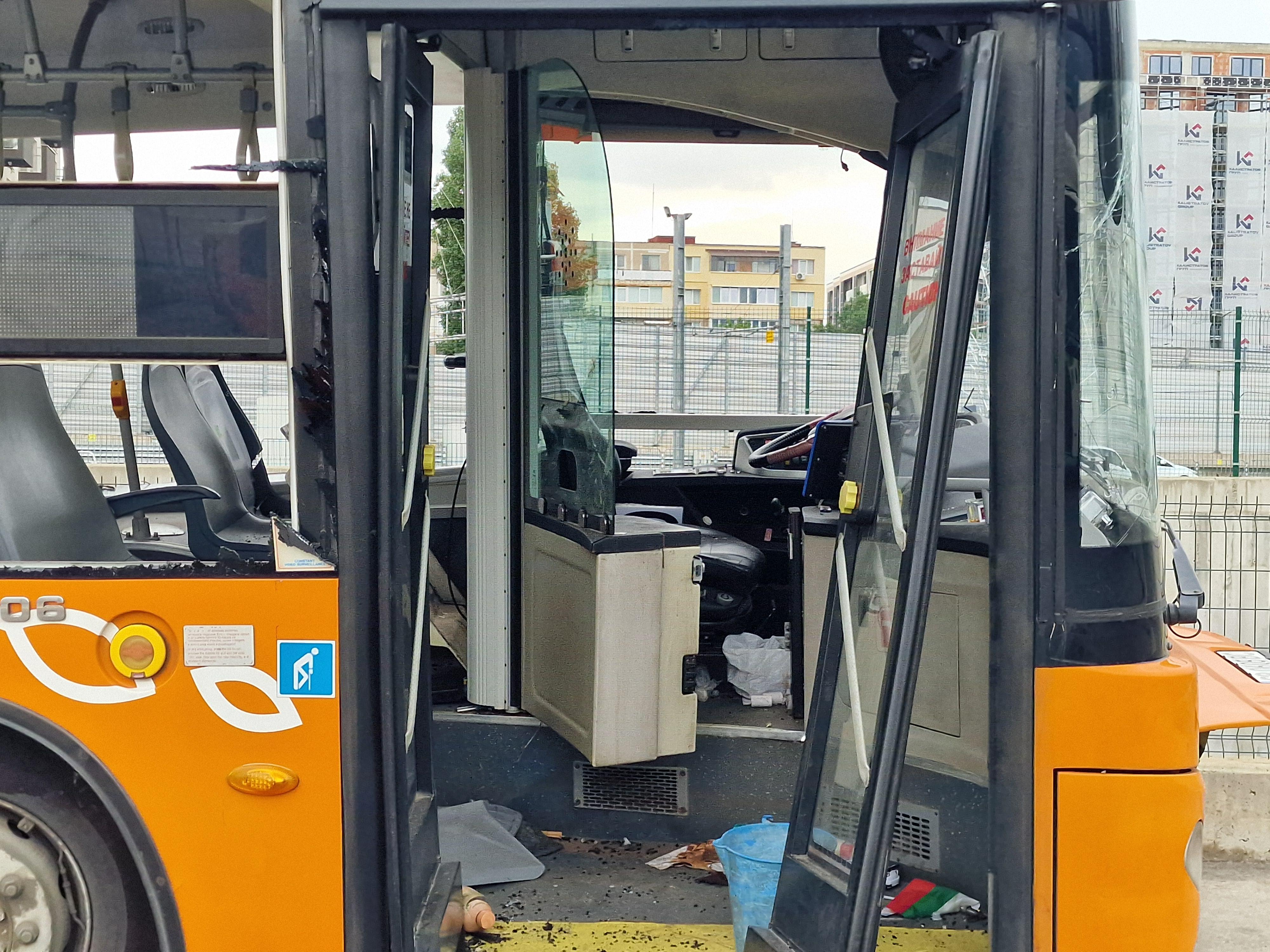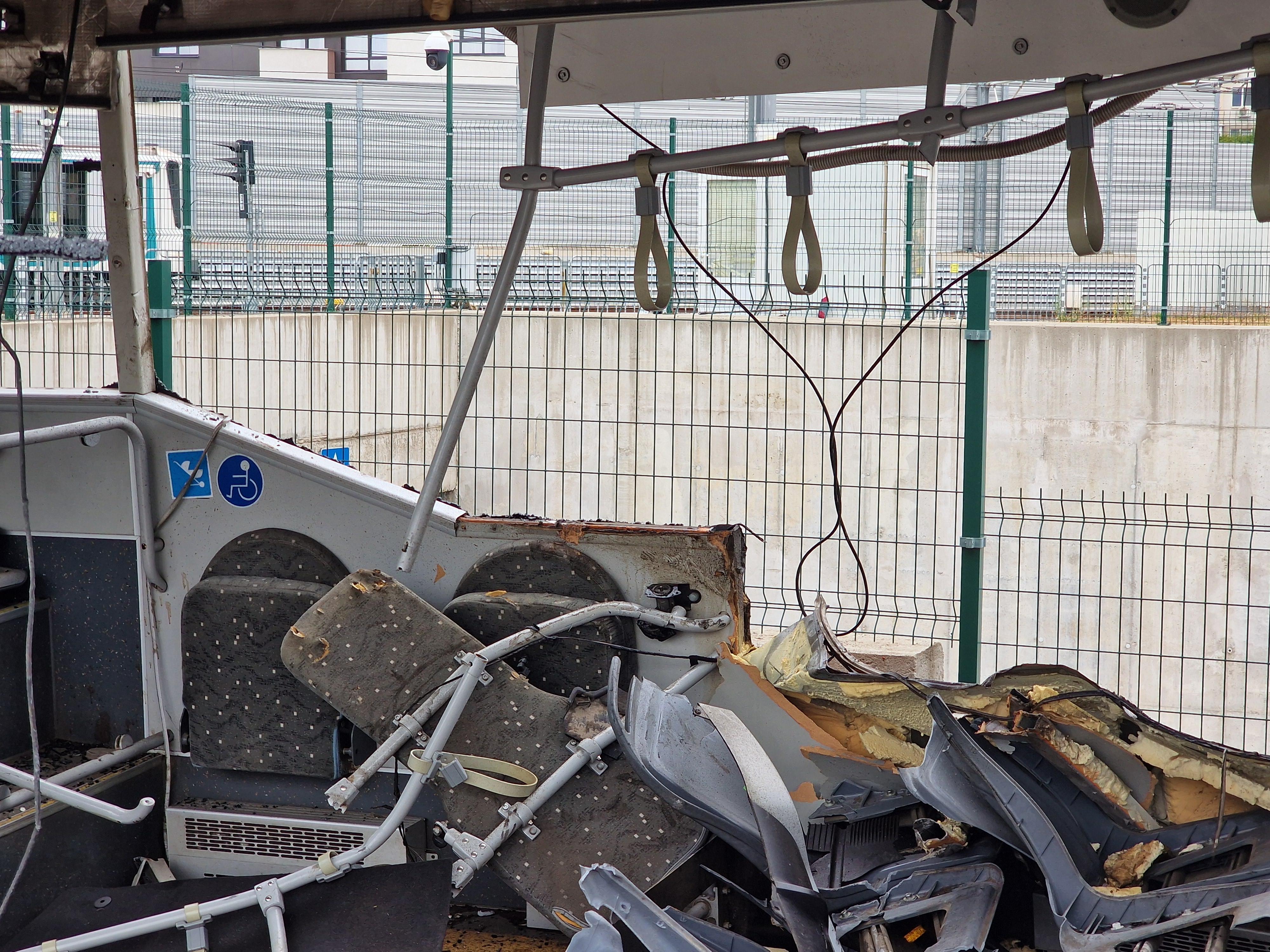След силния сблъсък се вижда, че седалките са отнесени, а металните парапети са огънати, все едно са от хартия. Стъклата са изпочупени, а корпусът на автобуса – изкривен до неузнаваемост.