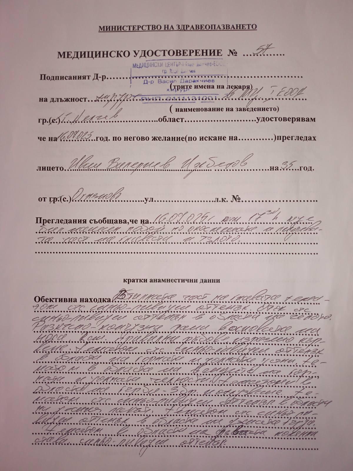 Ето и медицинското, което си е извадил Иван Ижбехов: