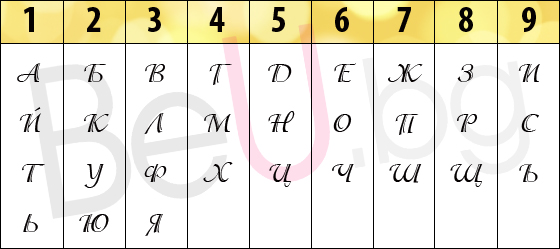 За да определи числото на разума, нумерологията използва един съвсем лесен подход. Нужни са 2 числа – едното е от деня ви на раждане (без месец и година), другото е сборът от цифрите, които съответстват на всяка буква от името ви (само първото, без бащино и фамилия). Тези цифри можете да видите на табличката по-долу. След като имате двете числа, ги събирате до получаване на едноцифрен сбор. Този сбор е вашето число на разума.