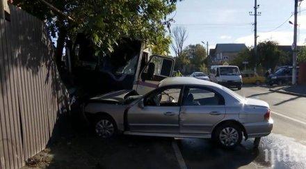 Тогава лек автомобил “Ауди“ летял с бясна скорост по тесните улички в района между “Космос“ и “Ахат“, предава "БулНюз". Младежът зад волана обаче не успял да реагира навреме и се забил в масивната ограда на къща на улица “Вардар“.