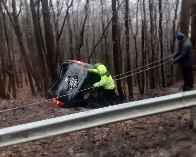Автомобил се заби в земята по пътя за Златните мостове на Витоша, публикуваха във Фейсбук групата "Катастрофи в София".