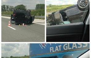 Кола се обърна по таван на автомагистрала „Хемус”. Инцидентът е станал в посока Варна до прохода „Витиня”.