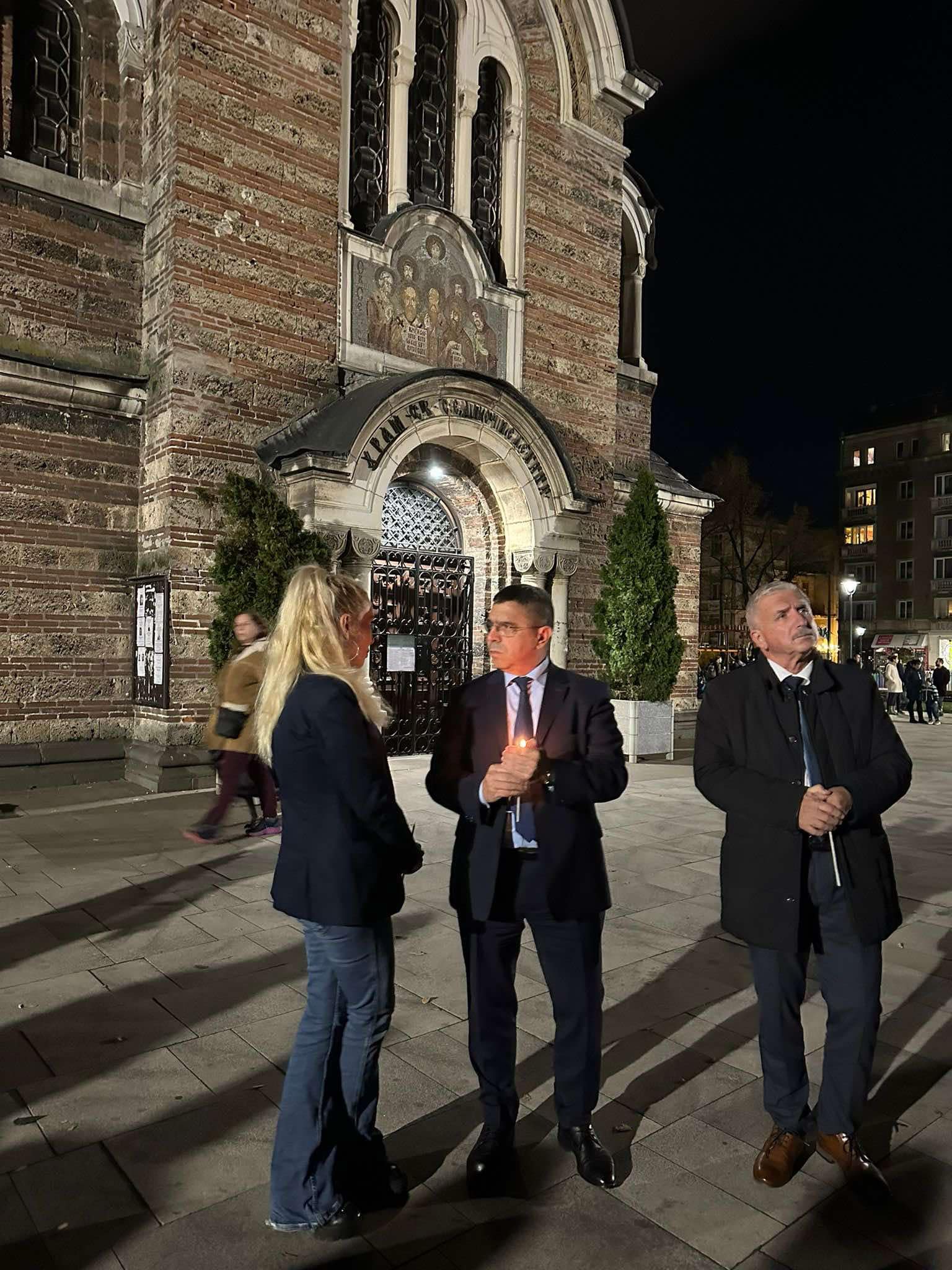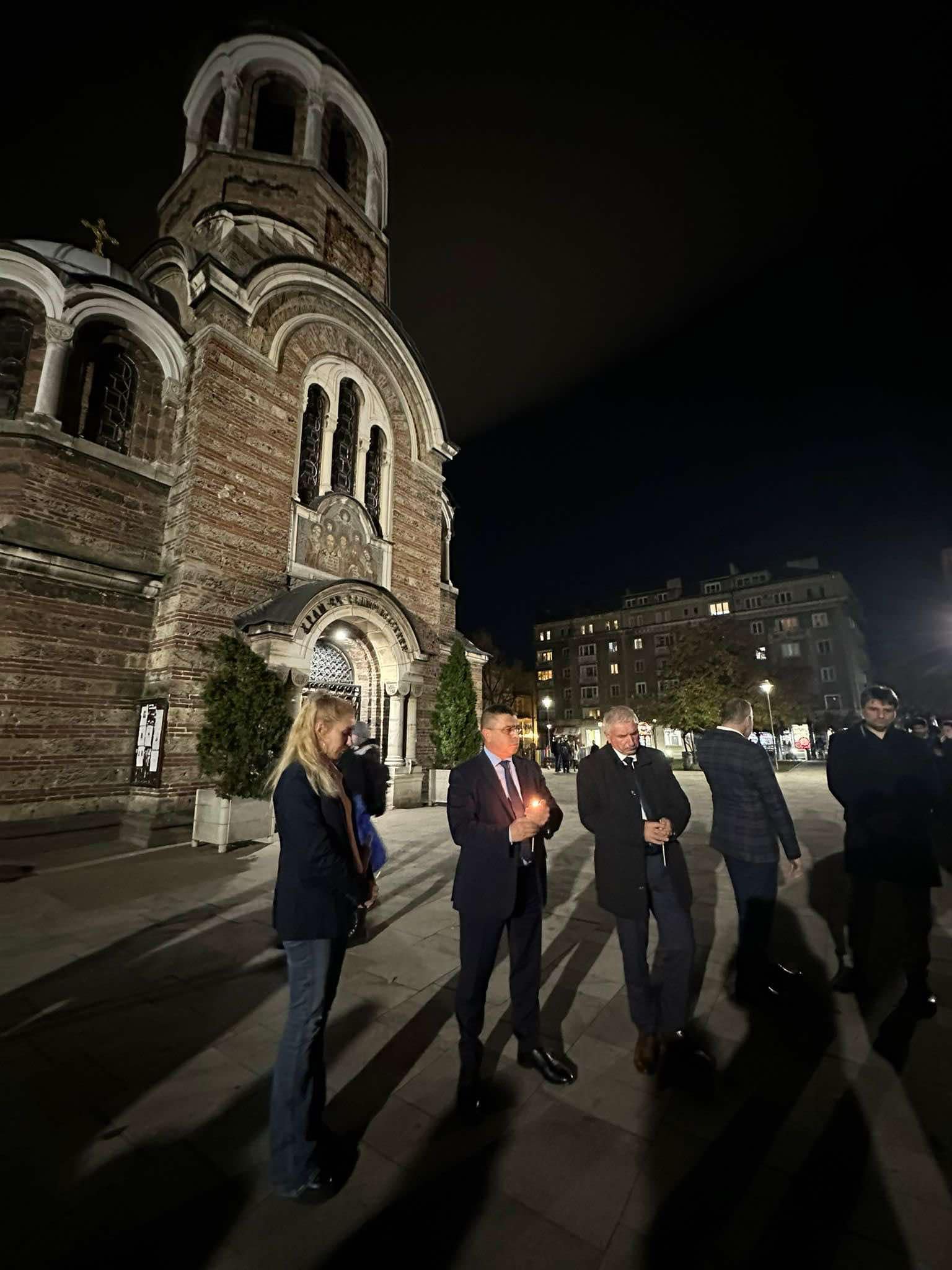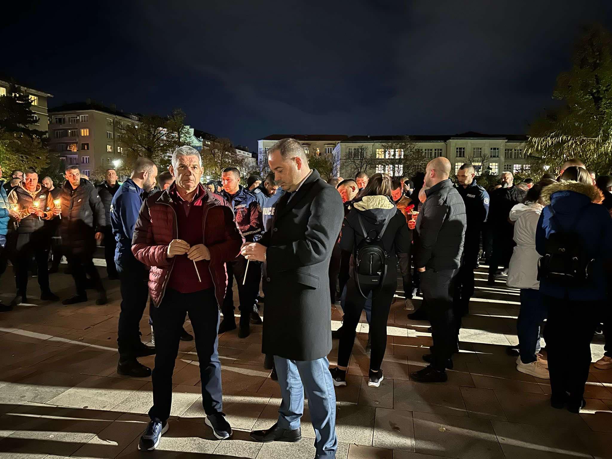 Колеги на обесилия се в София полицай Димитър Петров организираха бдение тази вечер пред Министерството на вътрешните работи. Сред множеството бяха настоящият вътрешен министър от служебния кабинет на Димитър Главчев - Атанас Илков, както и предишният министър и настоящ депутат от гражданската квота на ДПС-Ново начало Калин Стоянов.