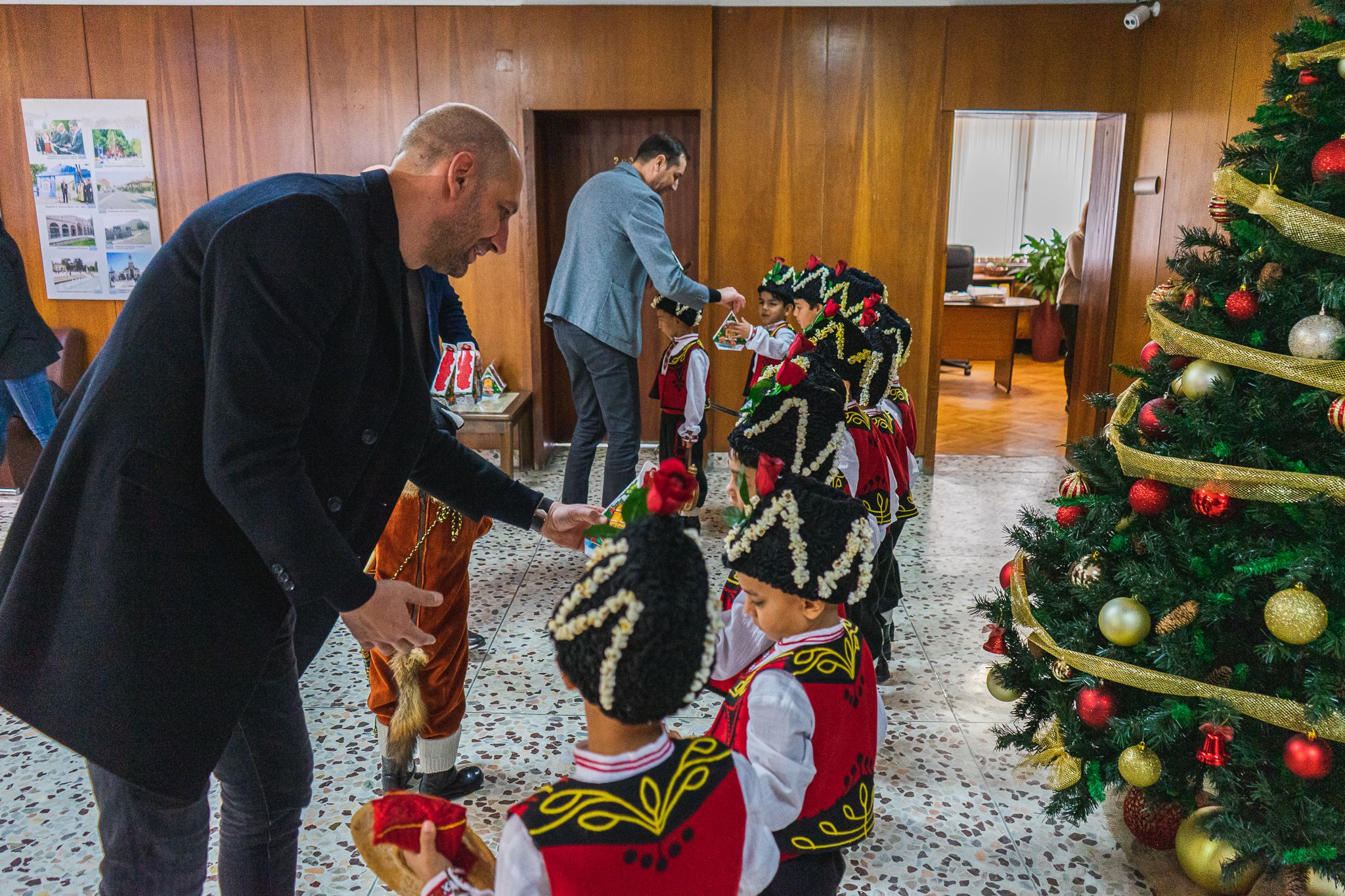 Коледари и сурвакари от Детска градина „Пролет“ гостуваха в Община Ямбол