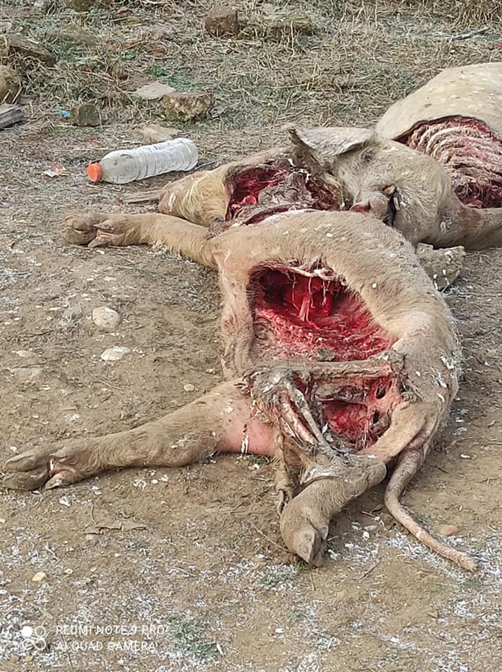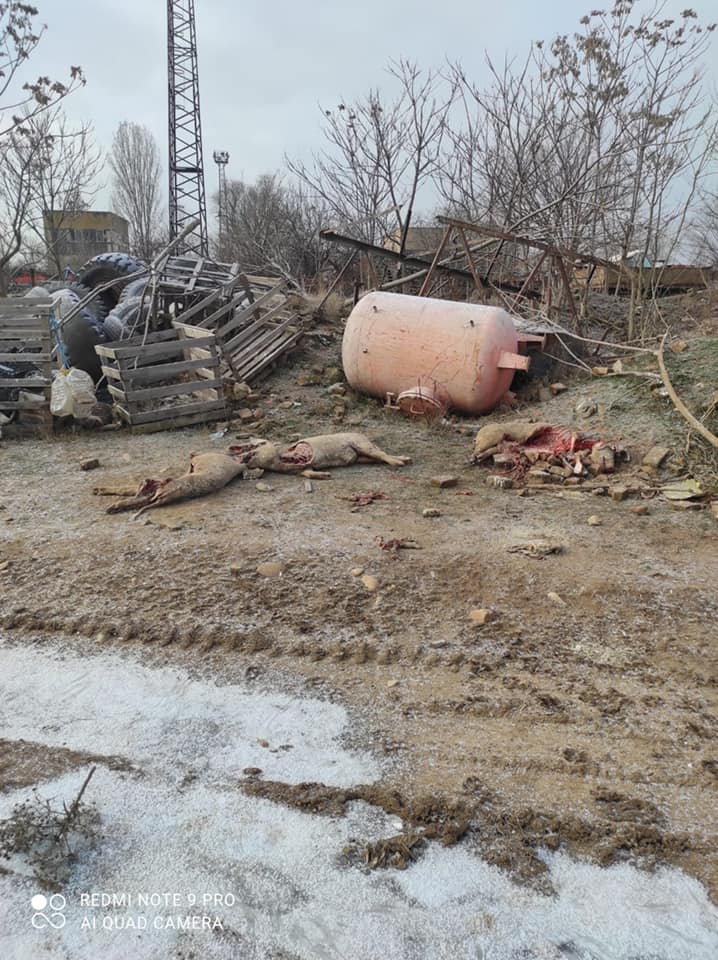 Кадрите с измрели животни меко казано наподобяват сцени от касов холивудски хорър. Свинете вероятно са станали храна на бездомните кучета, тъй като цели участъци от труповете им са оглозгани.