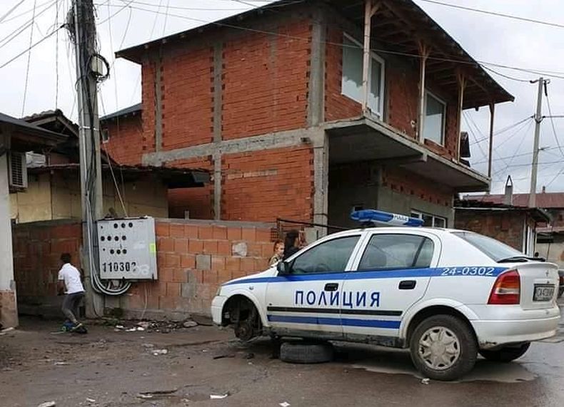 Забавна снимка на закъсала патрулка в столичния квартал "Факултета" обикаля в социалните мрежи, видя ПИК. Кадърът е публикуван в групата "Видяно в София", а на него се вижда полицейски автомобил без предна лява гума.