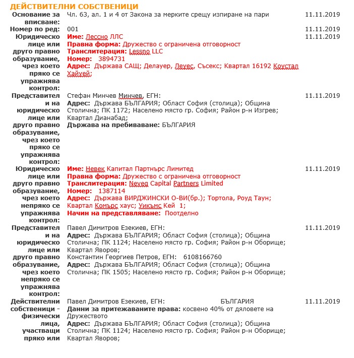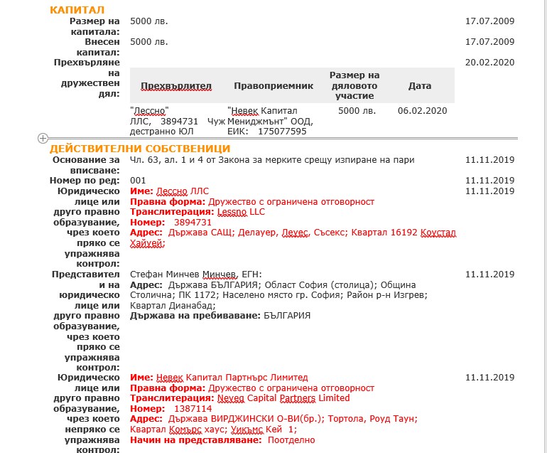 3. Невек Капитал Партнърс Лимитед Държава ВИРДЖИНСКИ О-ВИ(бр.); Тортола, Роуд Таун; Квартал Комърс хаус; Уикъмс Кей 1;