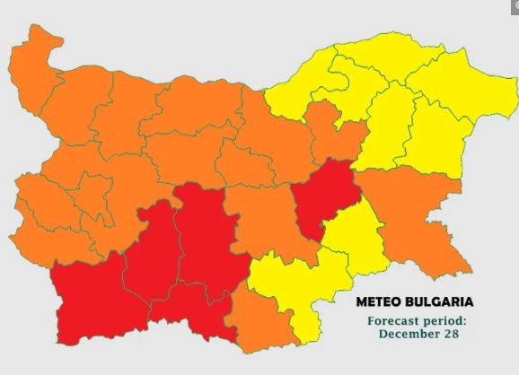 В жълто на картата на НИМХ са оцветени всички останали области без: Смолян, Хасково и Бургас.